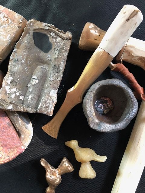 Was ist nun aber zu sehen im MobilenMuseum? Hier werden hauptsächlich Repliken und Rekonstruktionen gezeigt. Das hat den Hintergrund, dass sich mit Rekonstruktionen ein viel plastischeres Bild der Vergangenheit erzeugen lässt als mit Originalen. Ein Steinbeil zum Beispiel wird besser verstanden, wenn es als Rekonstruktion mit Holzschaft und Wicklung angefasst werden kann, als wenn es ohne diese Elemente in einer Vitrine liegt.