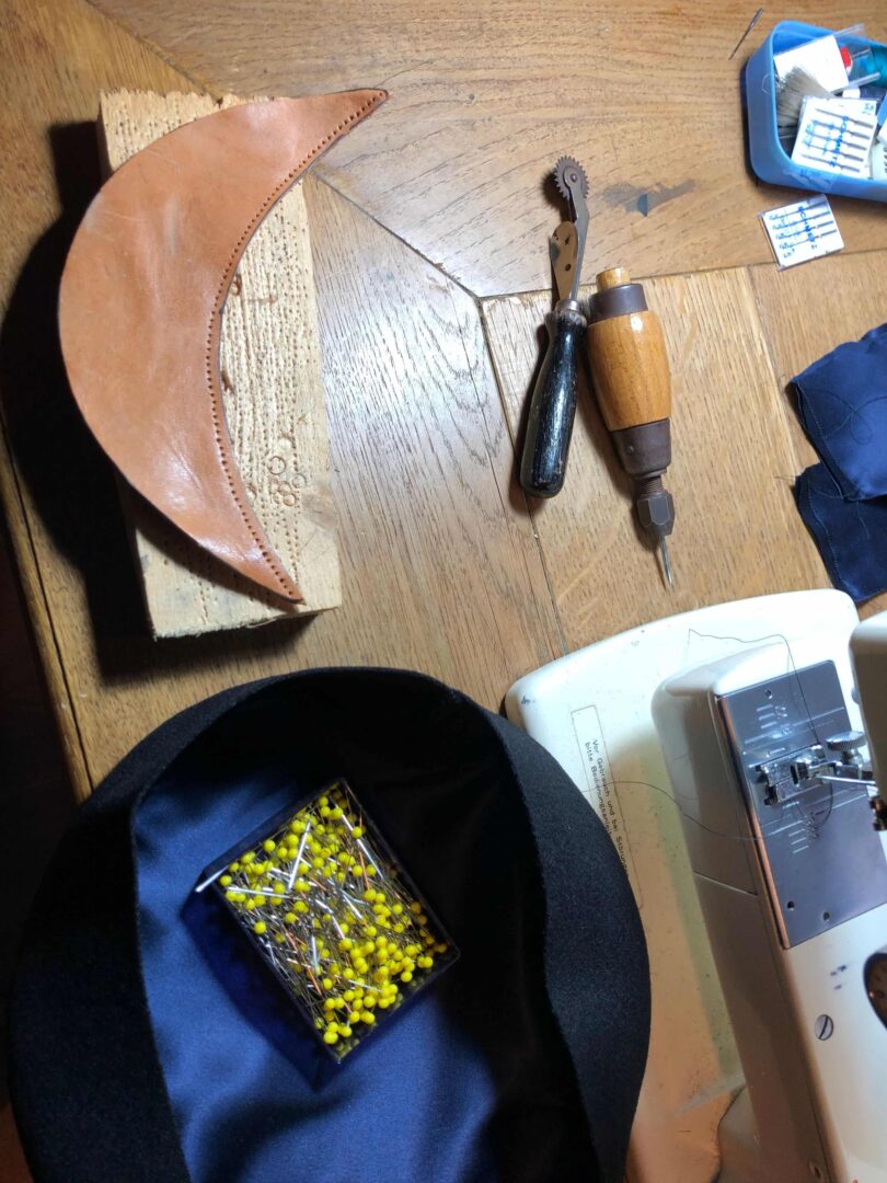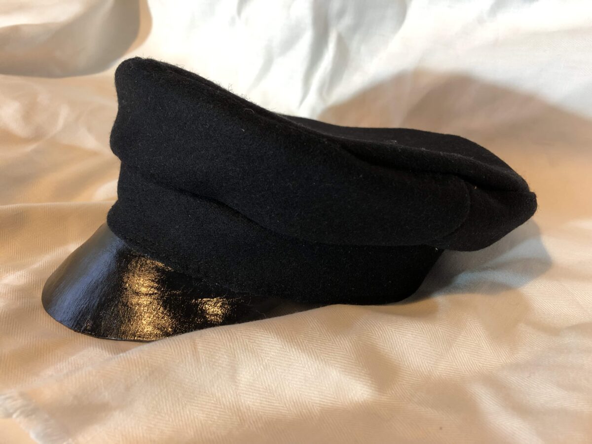 Eine aus Wolltuch und Seide und Blankleder gefertigte Mütze fertigte ich im Februar 2025 für einen Privatkunden an. Vorbilder stammen von Fotografien aus der Zeit zwischen 1900 und 1910, die in ostfriesischen Häfen aufgenommen wurden.