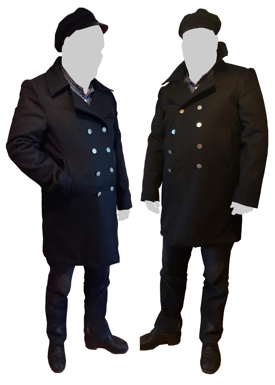 Zu Beginn des Jahres 2025 entstand diese Joppe aus schwarzem Wolltuch und einem Wollfliesfutter und blanken Zinnknöpfen. Vorlagen kamen von Fotografien aus der Zeit zwischen 1890 und 1910, die in Ostfriesland aufgenommen wurden. Bemerkenswert ist das sehr hohe Gewicht.