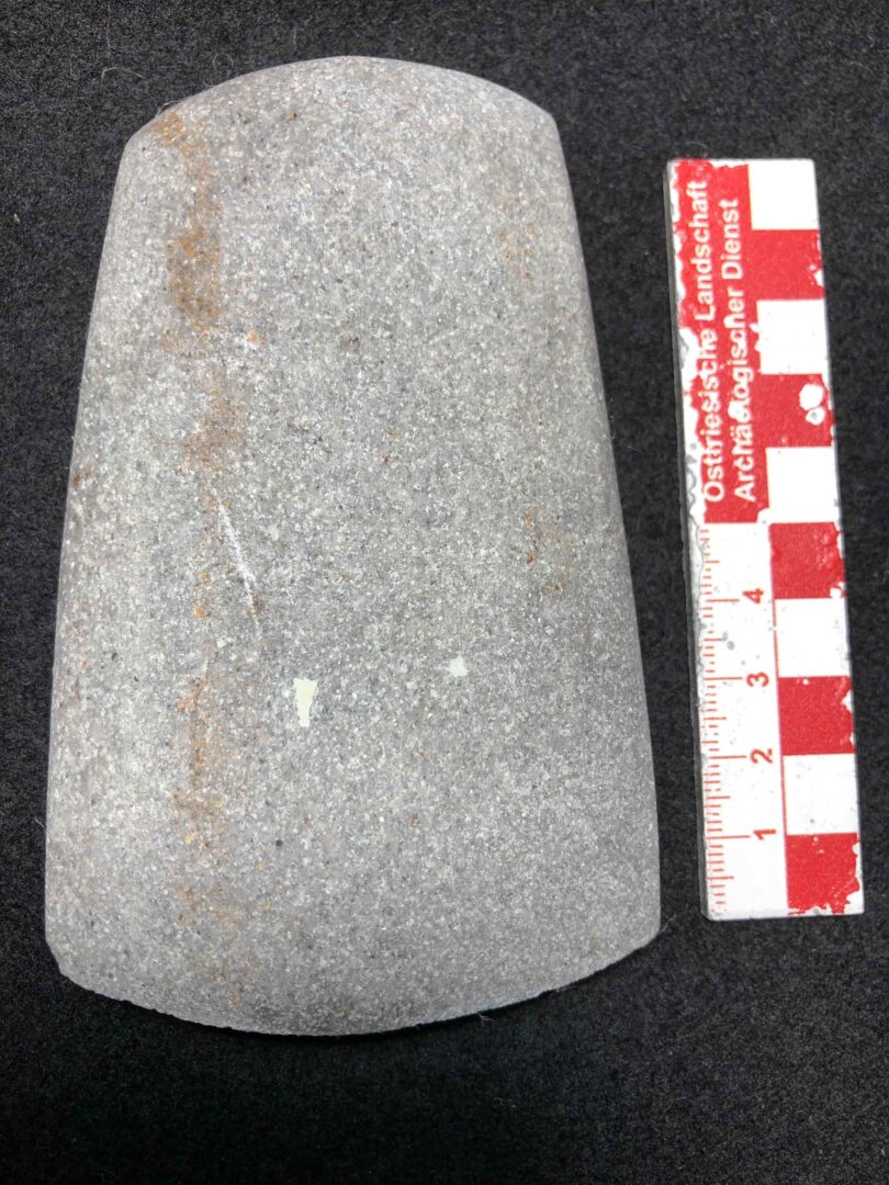 Eine Schule in Bayern wünschte sich einen Nachbau eines Felsgesteinbeils, um ein Steinzeitprojekt durchführen zu können. Diese Replik ist gemacht worden, um benutzt zu werden.